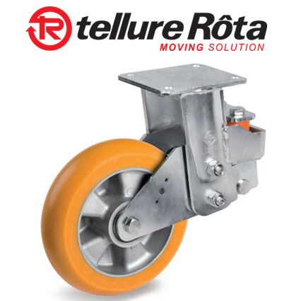 Suitable on trolleys with powered towing, at a speed up to 16 Km/h (4,4 m/s), for indoor and outdoor transportation, in case of obstacles and irregular surfaces. Its damping system is effective for loads between 50 and 400 daN (for each wheel), while the castor works with no damping in case of lower or higher loads.