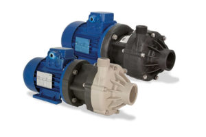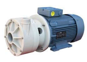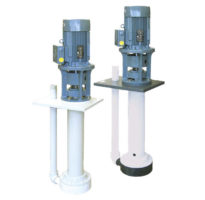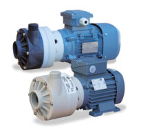 Bei den Pumpen der SERIE MB handelt es sich um horizontale Kreiselpumpen aus Harz (Polypropylen oder PVDF). Sie sind mit einem offenen Laufrad ausgestattet, mit dem auch stark verunreinigte Fördermedien mit einer scheinbaren Viskosität bis zu 500 cPs (bei 20 °C) und kleinen, festen Schwebstoffen gepumpt werden können.
