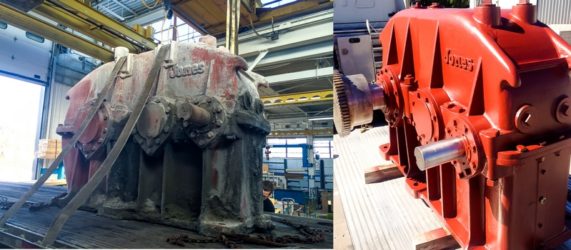 The remanufacturing is carried out with the complete disassembly of the gearbox; after the analysis all the worn components are replaced: bearings, gears, gaskets / seals or other damaged mechanical parts that are redesigned and remanufactured in case they are not commercially available. Finally, after the assembly of the gearbox, the final test is performed to check its efficiency and operation (any noise, leaks, etc.).