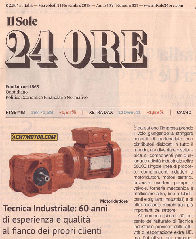 DetailsToday 21 November 2018, Tecnica Industriale Srl is proud to have obtained a prestigious editorial on its activities on the national italian newspaper Il Sole 24 Ore.